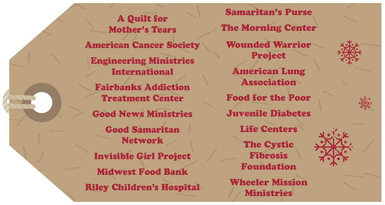 /In a spirit of gratefulness and an interest in giving back, CE Solutions again decided to contribute to charitable organizations this past holiday season. Many of our clients, collaborators and friends responded to our email announcement and voted for their favorite charities as chosen by our staff. In addition, some elected to write in organizations important to them, adding six more to the list. The distribution of our holiday donations reflects the number of votes received for the following charities: